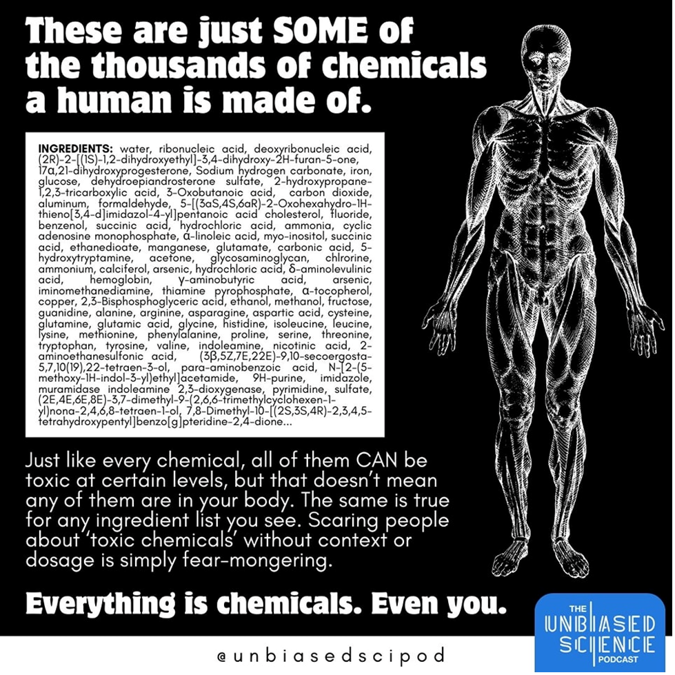 Unfortunately for them, every sip, every bite, and every breath allows chemicals to enter your body—which, itself, is made up of nothing but chemicals.